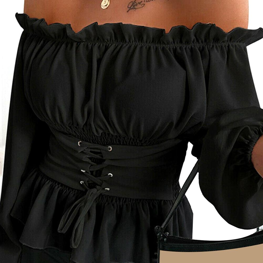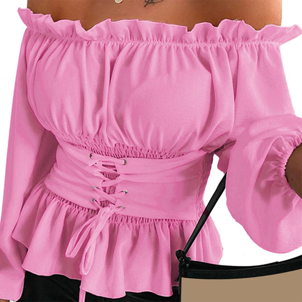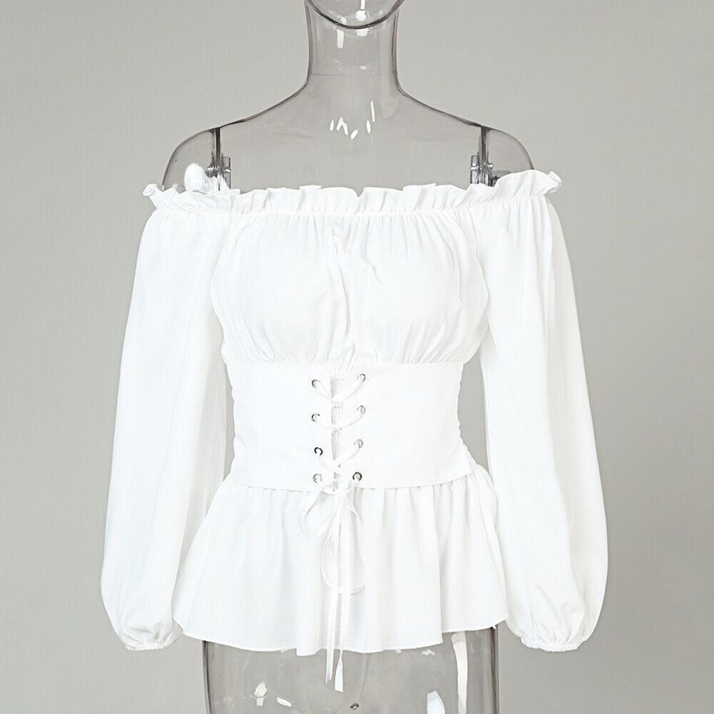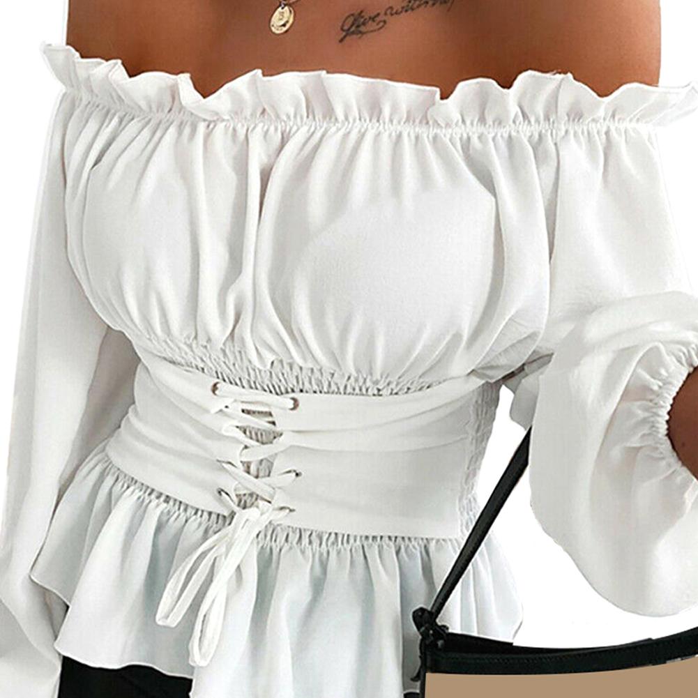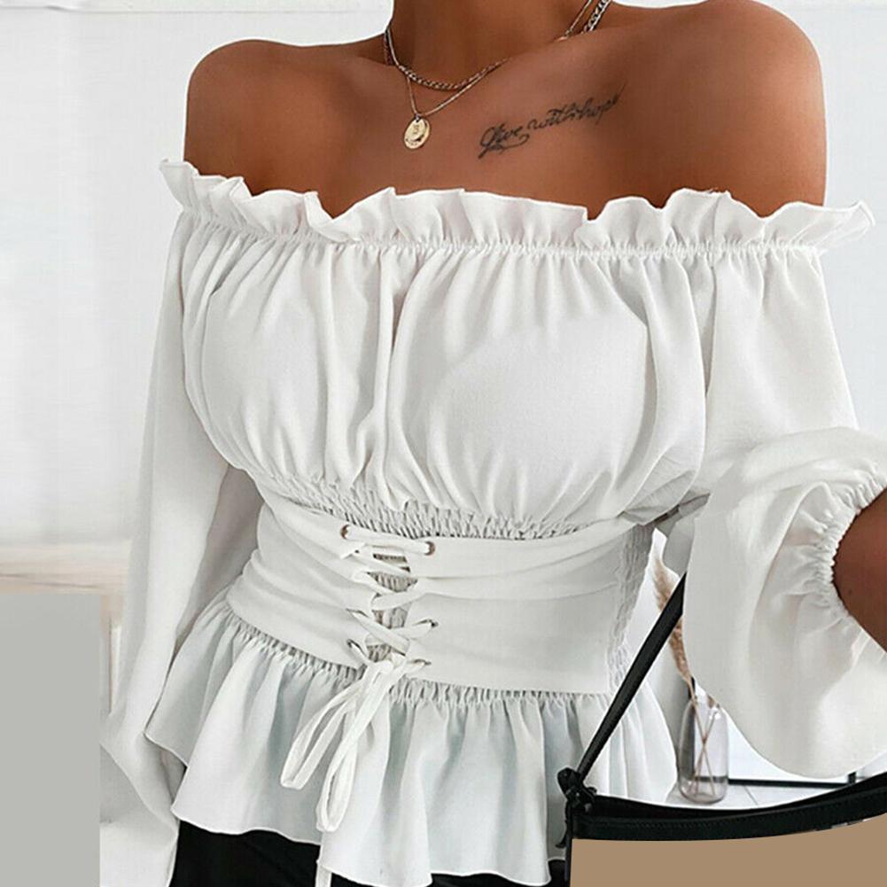 Womens Tops and Blouses Autumn Ruffled Long Sleeve White Shirt Ladies Solid Color femme blusa Off Shoulder Top